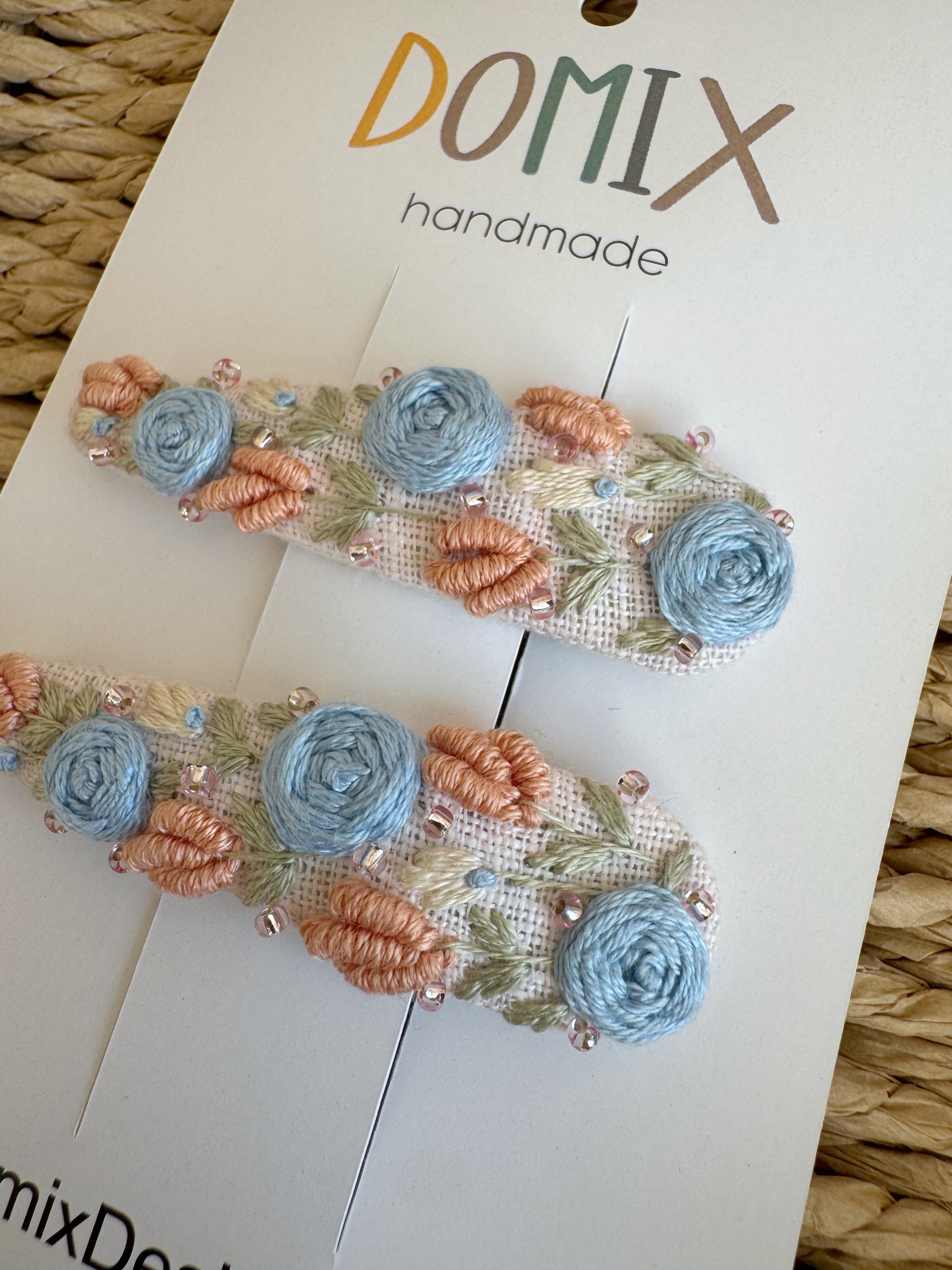 Pinces à cheveux faites main, ornées de perles et de broderies – Lot de 2
