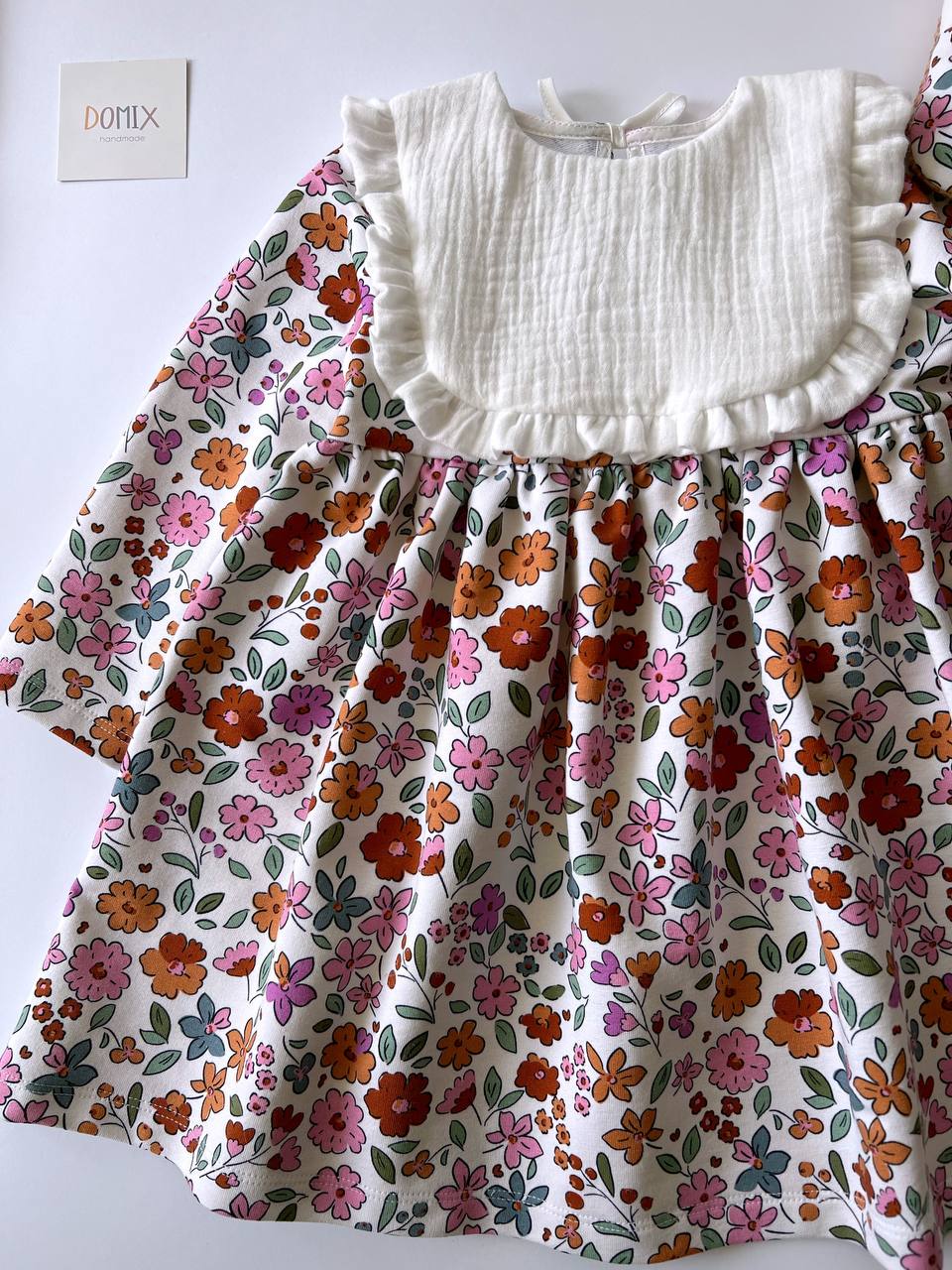 Robe bébé fleurie avec bavoir en mousseline | Vêtements bébé faits main